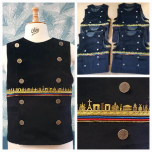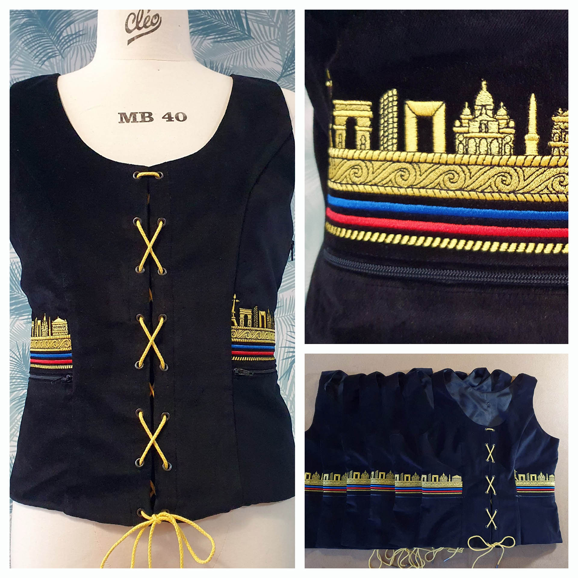 Dans la continuité du travail que j’avais réalisé en début d’année 2023 pour un cercle celtique, j’ai été sollicitée par le Bagad Pariz (Formation instrumentale bretonne de Paris) pour renouveler leurs gilets hommes et femmes.