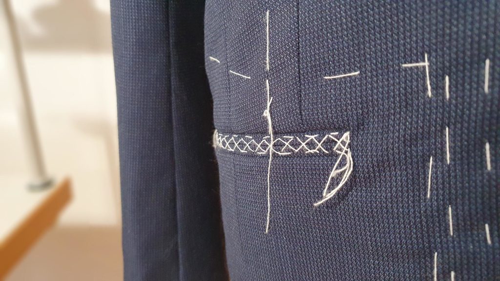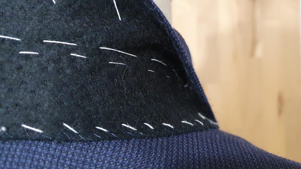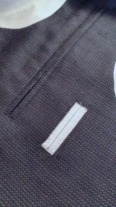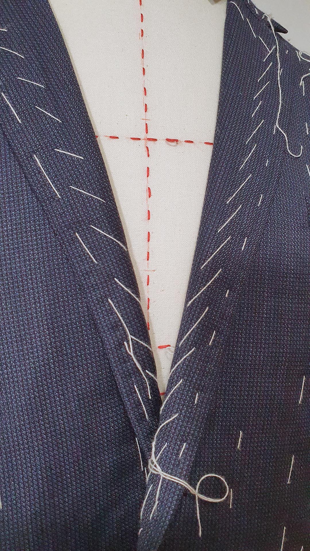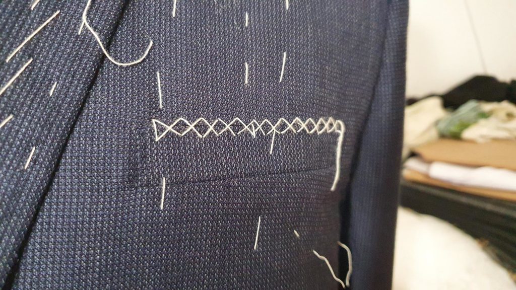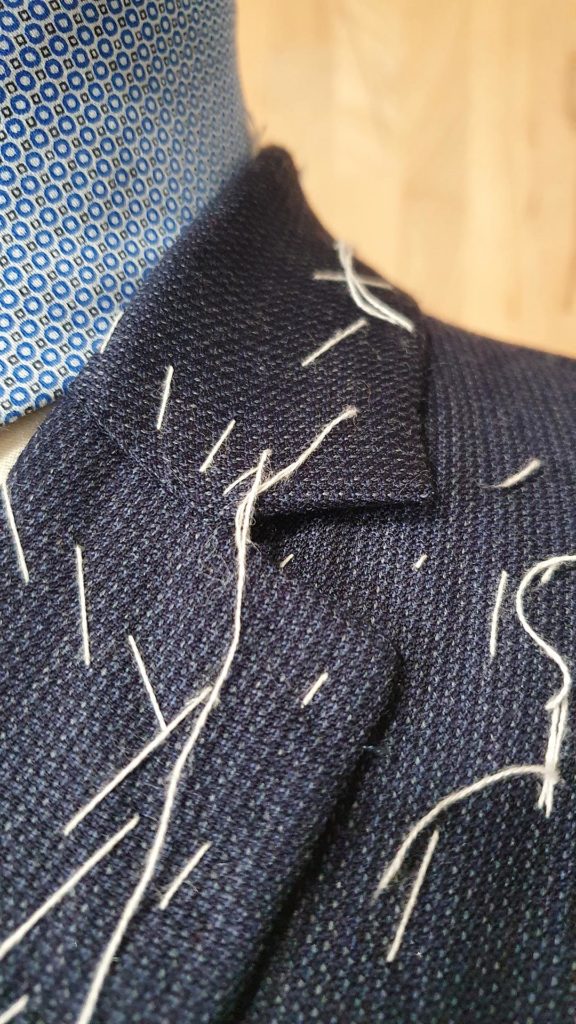 Montage traditionnel. Avant la réalisation des boutonnières et la pose des boutons.