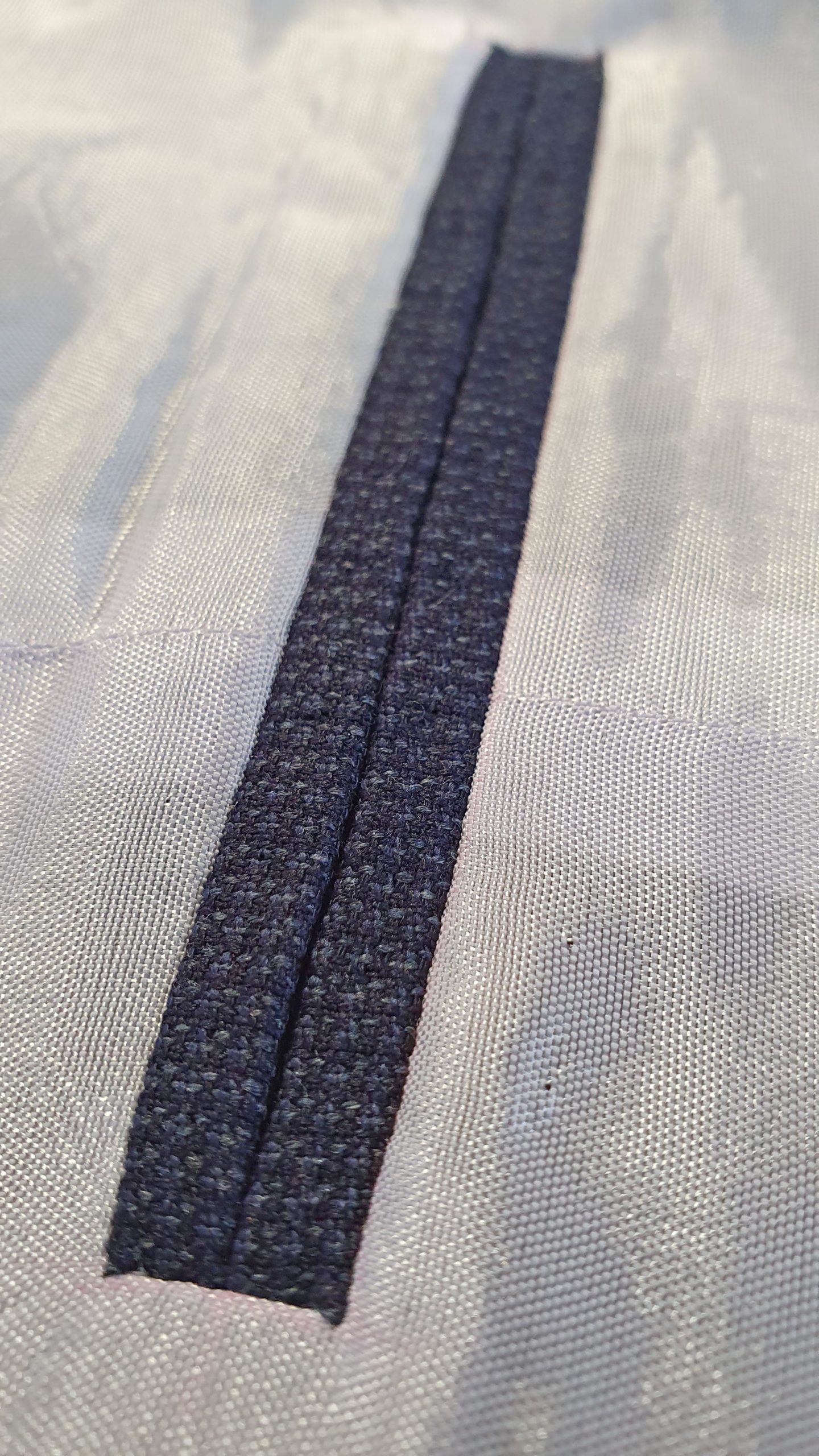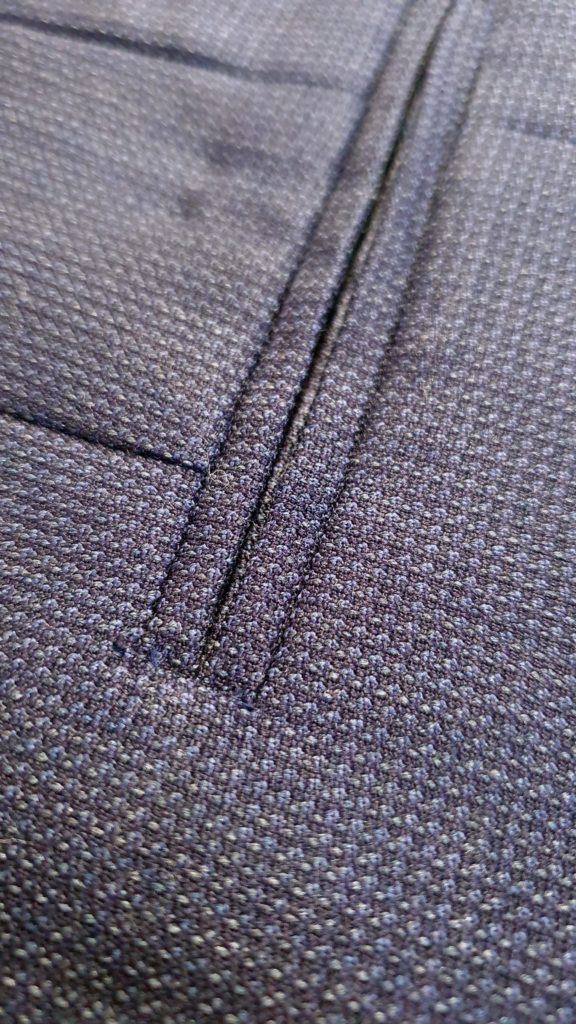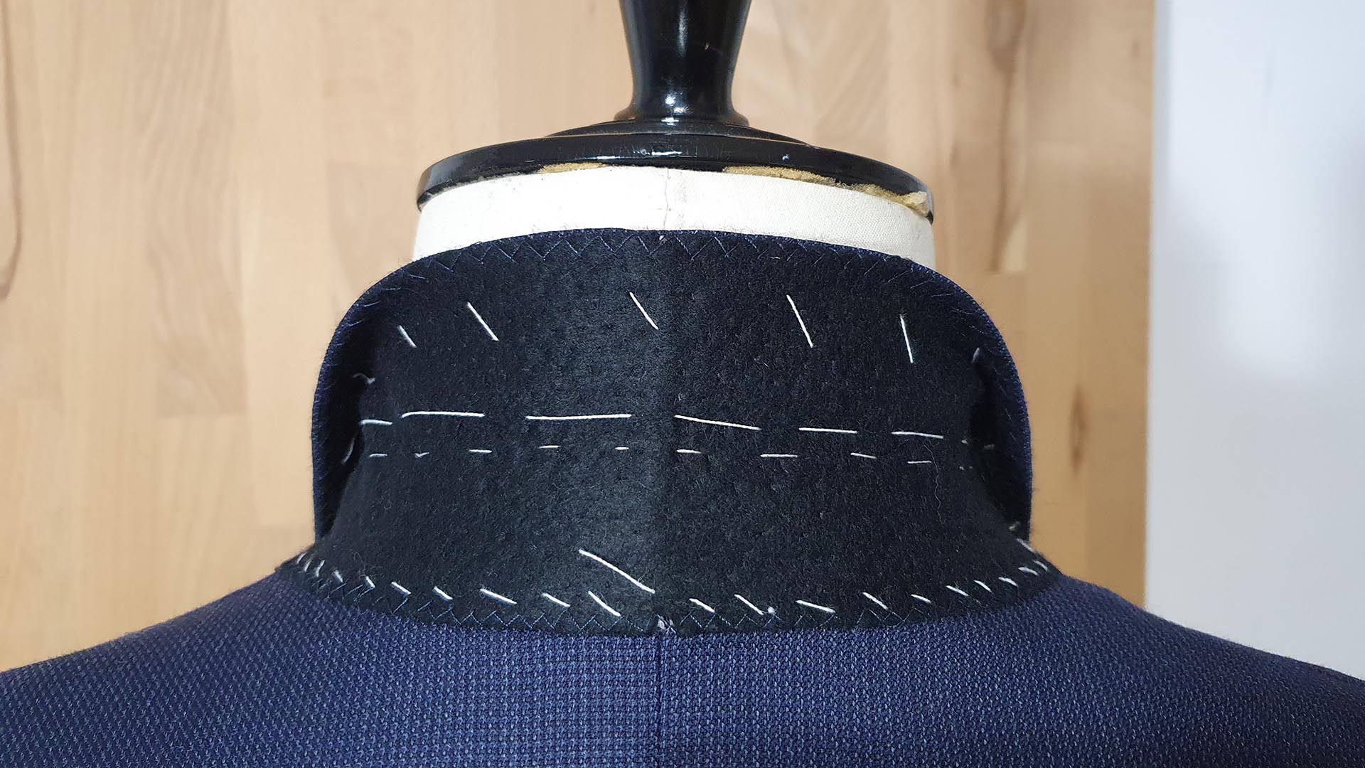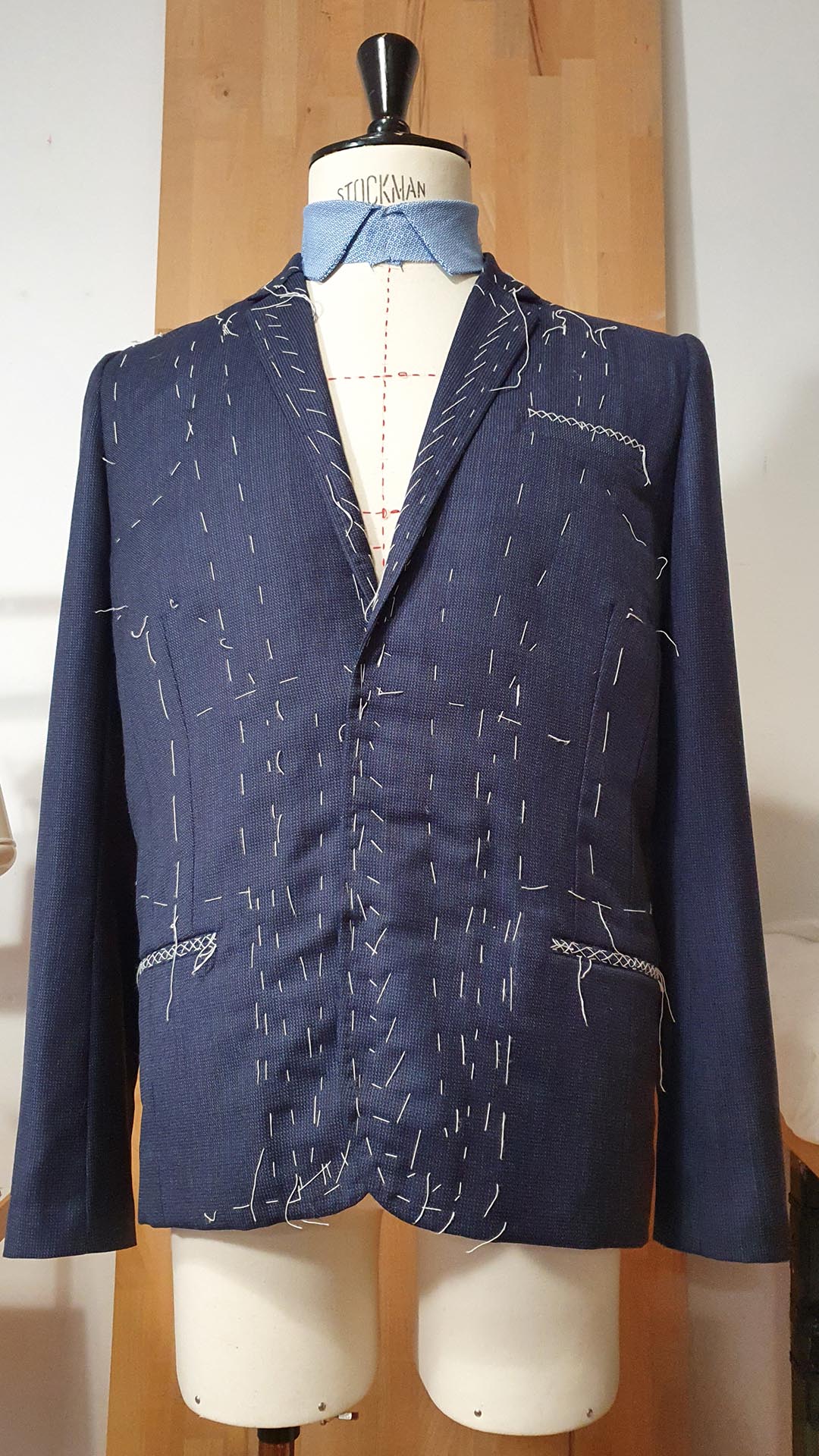Montage traditionnel. Avant la réalisation des boutonnières et la pose des boutons.